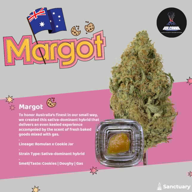 To honor Australia's finest in our small way, we created this sativa-dominant hybrid that delivers an even keeled experience accompnied by the scent of fresh baked goods mixed with gas.