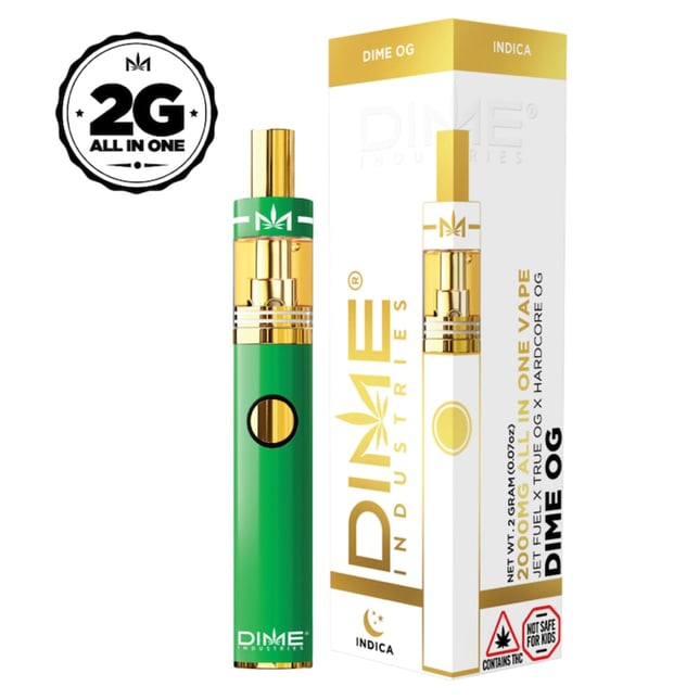 Our own OG strain was created by crossing Jet Fuel, Hardcore OG, and True OG. The flavor profile is meant to remind users of that picture-perfect OG, like the one you could smell through a dime bag. With sweet notes of diesel, lemon, pine this will quickly become one of your favorite flavors. Even though Dime OG is a heavy Indica, the Jet Fuel will lift you off into that dream-like state and have you “thinking higher.”