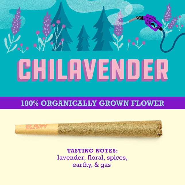 Bred by local legend, Boston Bob, Chilavender is a hybrid known for its spicy, herbal flavor with notes of lime, pepper, and sweet lavender, delivering a powerful mix of euphoria, focus, and deep physical relaxation, making it great for evening stress relief but also sparking creativity before settling into a couchlock high. Its buds often display a mix of a gorgeous dark purple, green, and orange hues with sparkly trichomes.