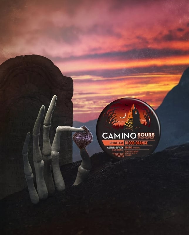 Shriek not in terror, but in delight- for this Halloween, Camino Sours Blood Orange gummies feature a "Spirited" effect, 5MG THC, and a vegan recipe with a supernatural dusting of sour sugar. With a stimulating blend of sativa-like terpenes and the intense, sweet flavor of blood orange, thrill-seekers should move quickly before they vanish into the night...