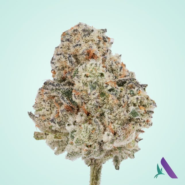 accented with notes of pepper and gas. The densely trichome-covered buds testify to its high-quality