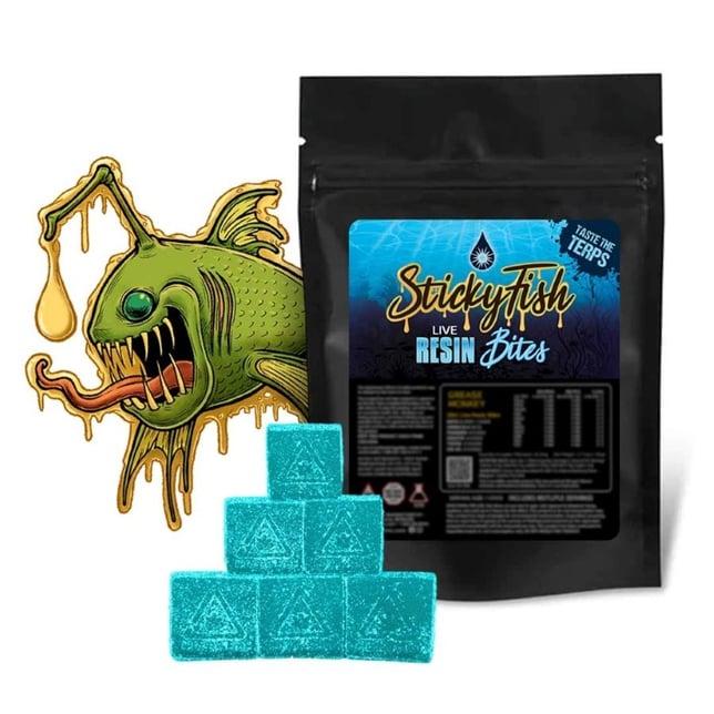 Gummy enthusiasts, take note! Sticky Fish Live Resin Gummies make it easy to enjoy full-bodied, terpene, and cannabinoid-rich cannabis anywhere. These mouthwatering gummies are infused using Live Resin made from fresh-frozen cannabis. They capture the plant's natural flavor and effects, giving you an authentic entourage experience with zero artificial ingredients. Take one piece at a time & taste the terps!