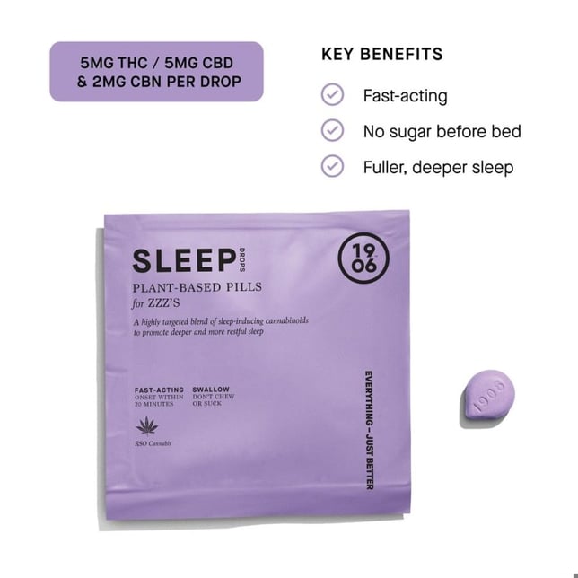 Each SLEEP Drop contains 5mg THC, 5mg CBD, and 2mg CBN.