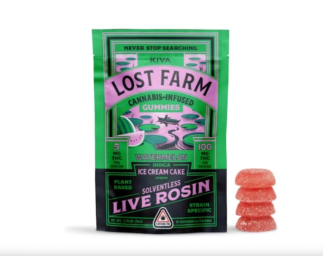KIVA Lost Farm - Ice Cream Cake x Watermelon Live Rosin Gummies (100mg 10pk)