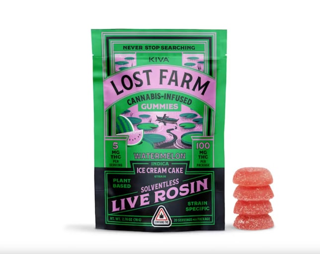 KIVA Lost Farm - Ice Cream Cake x Watermelon Live Rosin Gummies (100mg 20pk)