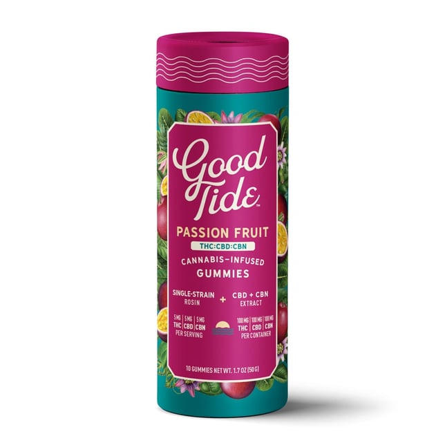 Take your mellow to the next level with Good Tide Passion Fruit THC:CBD:CBN gummies.