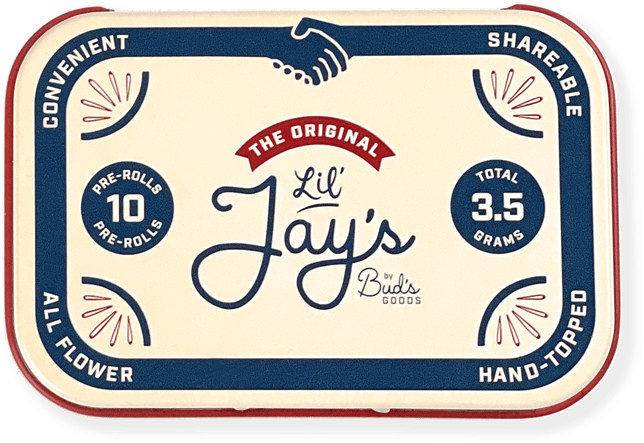 Lil’ Jay’s are “The People’s Eighth” packed into 10 mini pre-rolls in a pocket-sized tin. They are convenient & perfect for sharing with all your buds!