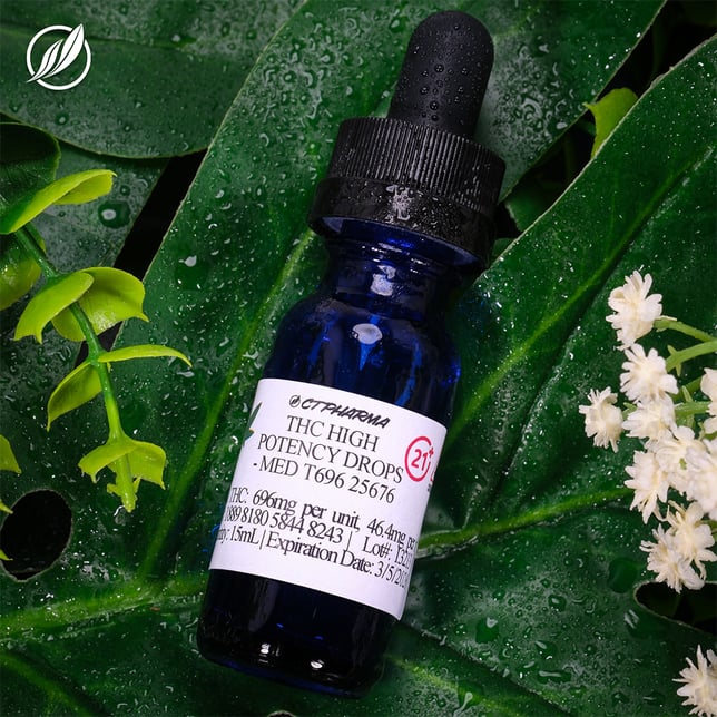 THC drops are made of marijuana extract blended in a solution of natural flavors and medium chain triglycerides (MCT).