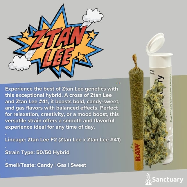 Experience the best of Ztan Lee genetics with this exceptional hybrid. A cross of Ztan Lee and Ztan Lee #41, it boasts bold, candy-sweet, and gas flavors with balanced effects. Perfect for relaxation, creativity, or a mood boost, this versatile strain offers a smooth and flavorful experience ideal for any time of day.