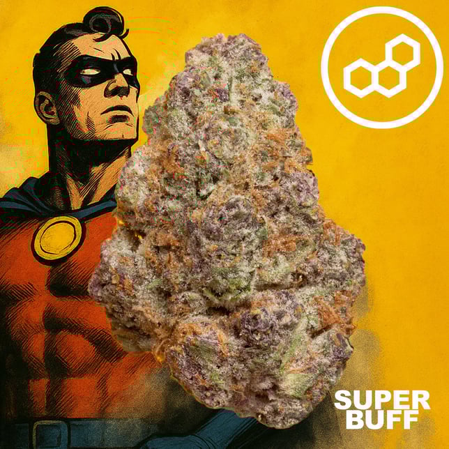 "Super Buff” or Super Boof is a new Sativa strain made by crossing Black Cherry Punch and Tropicana Cookies. This strain is notorious for its gorgeous crystalized purple and orange complexion with a sweet and earth cherry nose to match.