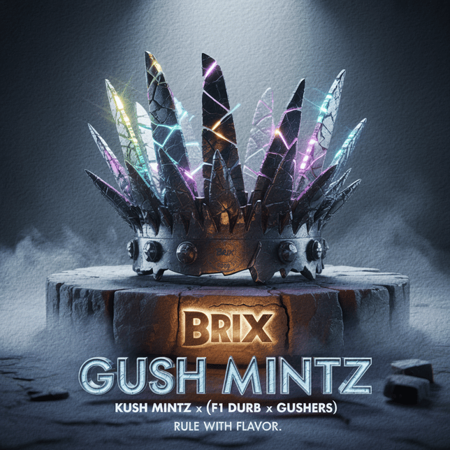 Gush Mintz is a flavorful Hybrid strain that combines a robust, gassy aroma with a sweet undertone and hints of pine. It is a cross between Kush Mints - F1 Durb x Gushers. This strain offers a dynamic and enjoyable sensory experience that balances bold, pungent notes with a touch of refreshing greenery.