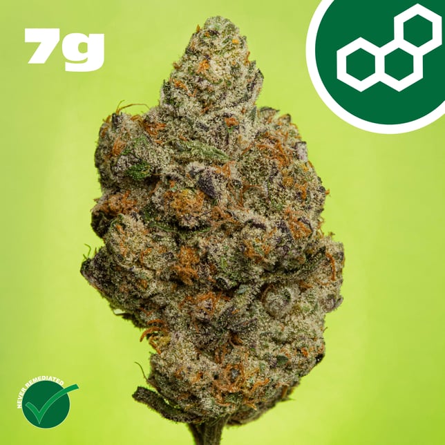 AlphaPinene: 0.21% | BetaCaryophyllene: 1.28% | BetaMyrcene: 0.07% | BetaPinene: 0.15% | Bisabolol: 0.17% | CBGA: 0.67% | Humulene: 0.34% | Limonene: 0.57% | Linalool: 0.08% | Terpinolene: 0.06% | THC9: 0.71% | THCA: 21.14% | TotalTerpenes: 3.13% | Flower Equivalent: 7g