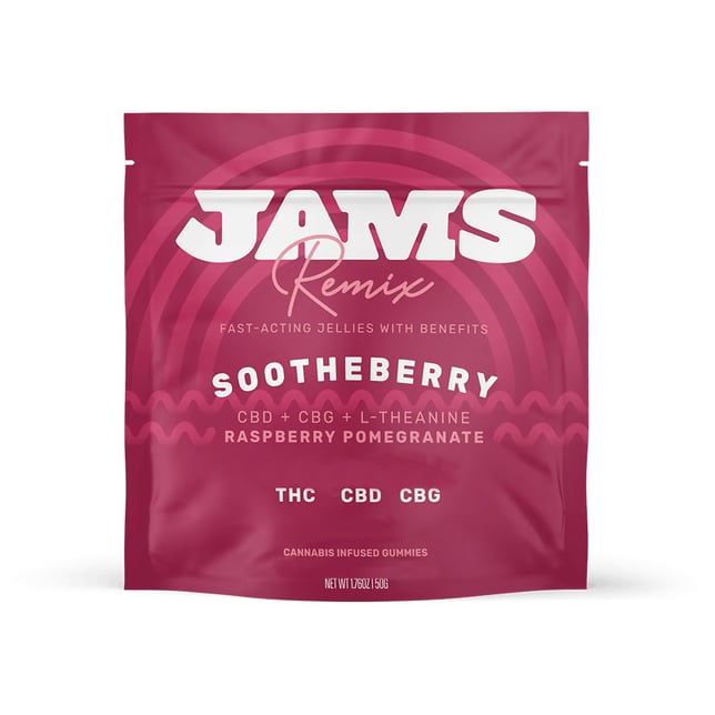 JAMS - Raspberry Pomegranate (H) Remix Fast Acting Ratio Jellies (4.97mg THC 4.92mg CBD 5.02mg CBG 20pk) C0030001348