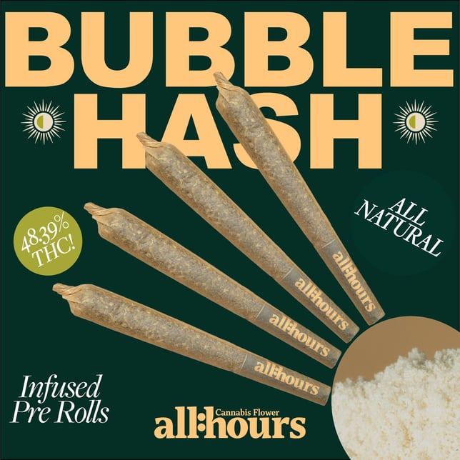 Potency: Bubble hash is a concentrated form of cannabis, resulting in higher THC levels compared to flower (up to 60% THC).