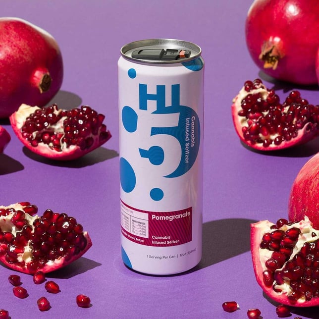 Hi5 cannabis infused seltzer contains 5mg of THC and an all-natural pomegranate flavor. The ancient Greeks believed that the pomegranate tree sprang from the blood of Dionysus, the god of wine. We think history is dope, and with zero sugar, zero calories, and gluten-free, Hi5 is dope, too. Each 4-pack includes four 12 ounce cans designed to take effect in five minutes. It may be a product of the gods.