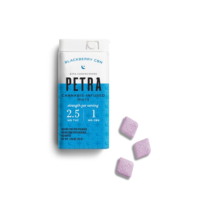 Sweet dreams now come in small packages. Petra Blackberry CBN is Kiva’s first mood-targeting mint. Fresh blackberry and vanilla flavors are blended with sugar-free, plant-based ingredients and a calming combination of 2.5 MG of THC and 1 MG of CBN to create our most tranquil Petra yet. Whether it’s a power nap or a full night’s rest you need, Petra has you covered.